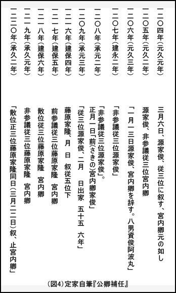 そして畑龍英氏の説は今回の再検討により、定家自筆『公卿補任』と『尊卑分脉』の記述から正しいことが裏付けられたのである。